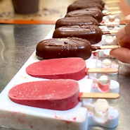 -Réalisation de différents desserts glacés : bâtonnets (moulage et recette d’enrobage croquante spéciale congélation), barres glacés, cookies garnis de glace, fruits givrés, mystère….
